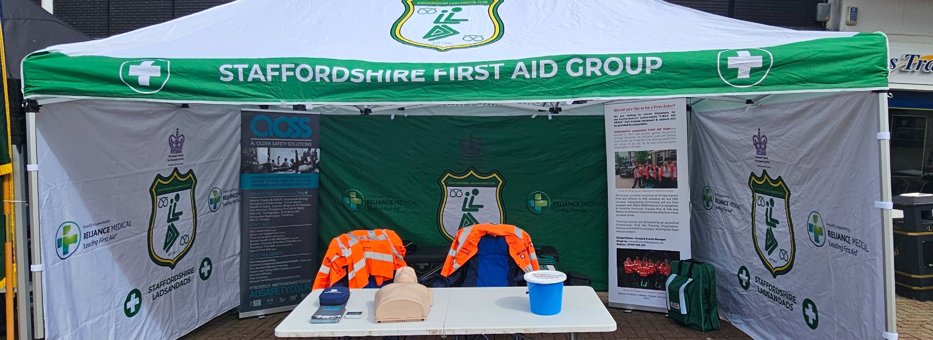 Over the years, we have proudly trained fourteen volunteers to a high trauma standard, equipping them with the skills necessary to provide crucial first aid at events, including our own North Staffs Junior and Youth Football Leagues. In recognition of our efforts, Staffordshire First Aid Group, along with Staffordshire Ladsandads, was awarded the prestigious Queen’s Award for Voluntary Service. We wear the Royal Crest on our logo with pride, a symbol of our unwavering commitment to the communities we serve.